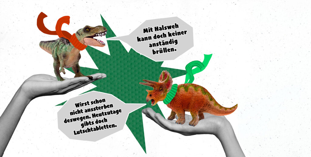 Halsschmerzen waren schon früher ein echtes Dino-Drama. Fossile Funde belegen: Das Kratzen in der Kreidezeit gab es tatsächlich. Schon die Saurier fingen sich mitunter Atemwegsinfekte mit Husten, Halsweh und Fieber ein. Die Wurzeln vieler Krankheitserreger reichen eben weit in die Vergangenheit zurück. Im Leo sind wir aber auch heute keineswegs, wie regelmäßige Erkältungswellen beweisen.